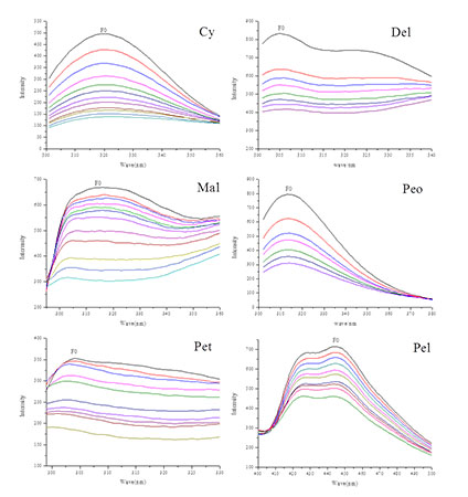 該篇發表在《食品化學》的論文即對第二個方面食品成分影響納米材料的吸收展開的研究工作。在這篇論文中,王峻康和張佳琪兩位同學深入探討了常見花青素對二氧化鈦納米顆粒的影響。花青素是自然界一類廣泛存在于植物中的水溶性天然色素,并且因為花青素具有一些生物學活性,各種類型花青素也經常被用作食品添加劑成分。二氧化鈦是常見的金屬類納米顆粒,在食品行業被廣泛用作添加劑,例如增白劑。因此,在口服條件下腸道細胞很可能同時暴露于花青素和二氧化鈦納米顆粒,但之前很少有研究分析了花青素-納米顆粒共暴露對腸道細胞的影響。在本項研究中,兩位同學首先通過熒光滴定實驗測定了花青素與二氧化鈦納米顆粒的結合常數,發現二氧化鈦納米顆粒可以結合花青素,結合常數主要受花青素的結構影響,而花青素的抗氧化活性的影響則微乎其微。
