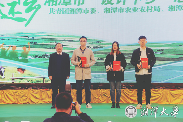10月31日,來自全省多所高校的136支設(shè)計團隊參加了湘潭市“設(shè)計下鄉(xiāng)”志愿服務(wù)大賽,我校學(xué)生獲得一等獎1項、二等獎2項、三等獎3項、優(yōu)勝獎4項。湖南省農(nóng)業(yè)農(nóng)村廳副廳長、黨組成員陳冬貴、湘潭市委副書記何俊峰以及我校副校長劉建平等出席頒獎典禮。