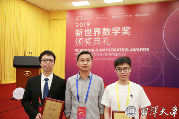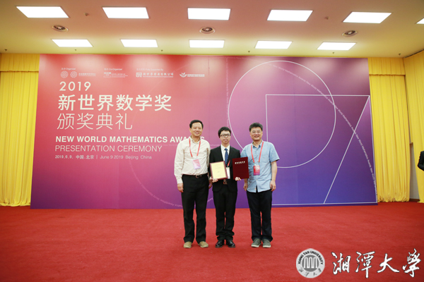 新世界數學獎(New World Mathematical Award,簡稱NWMA)是面向全球杰出華人數學學生的獎項,由華人杰出數學家、菲爾茲獎和沃爾夫數學獎獲得者丘成桐教授與新世界發展有限公司董事總經理鄭家純博士于2007年共同創立,每三年舉辦一次頒獎典禮,旨在激勵全世界范圍內杰出華人數學學子追求數學真理,對年輕數學人才取得的成就予以認可。本屆評選包括2017—2019年3個年度,本科組共評出2項金獎、3項銀獎和1項優勝獎,其中在2018年度評出的3個獎項中,湘大學子獲得1項銀獎和1項優勝獎。