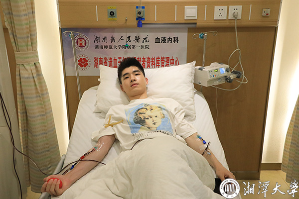 4月29日上午和30日下午,湖南省人民醫(yī)院造血干細(xì)胞采集室里,采集裝置快速運轉(zhuǎn),發(fā)出輕微而持續(xù)的響聲,湘潭大學(xué)興湘學(xué)院2020級土木工程專業(yè)學(xué)生謝海怡靜臥著,配合完成造血干細(xì)胞采集。