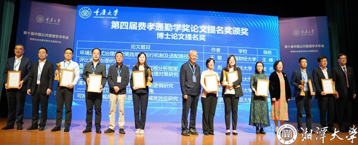 近日,第四屆“費孝通勤學獎”頒獎典禮暨第十屆公共管理學術年會在重慶大學舉行。公共管理學院2022屆博士生孟俏俏博士學位論文《基層干部避責行為的致因機理與治理對策研究——基于多方非合作博弈的視角》,榮獲“費孝通勤學獎”提名獎,指導老師為盛明科教授。