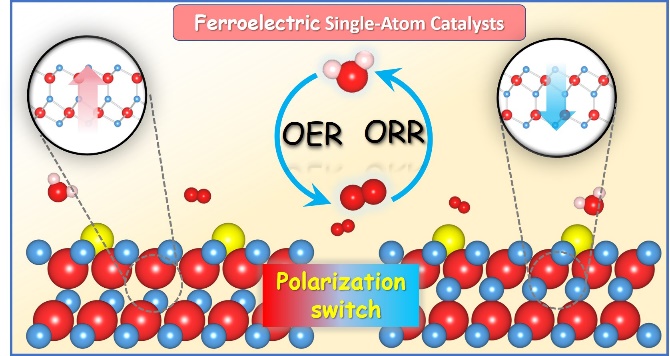 與傳統單原子催化劑不同,鐵電單原子催化劑可以通過翻轉極化來進一步調控和優化催化活性。本研究利用第一性原理計算從理論上探究了極化翻轉調控以In2Se3單層為錨定載體的鐵電單原子催化劑ORR和OER催化活性的微觀機制。研究結果表明,極化翻轉不僅能有效優化反應過電位,還能控制相應電位限制步,從而激活并提高催化性能。在特定反應步下翻轉鐵電極化方向可以重新激活催化反應,并進一步提高在極化向上和向下中活性較弱的特定鐵電單原子催化劑效率。這些前瞻性的計算結果表明,鐵電極化翻轉可以作為提高單原子催化劑活性的一個有效途徑。該研究工作得到了國家自然科學基金、湖南省教育廳優秀青年項目以及湖南省自然科學基金支持。