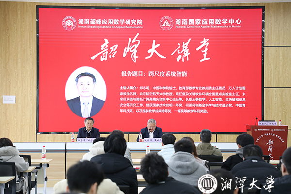 1月10日上午,中國科學院院士、北京航空航天大學教授鄭志明做客韶峰大講堂第3期第1場(總期第12場),作了題為“跨尺度系統智能”的學術報告,副校長喻祖國出席,湖南國家應用數學中心主任黃云清主持報告會。